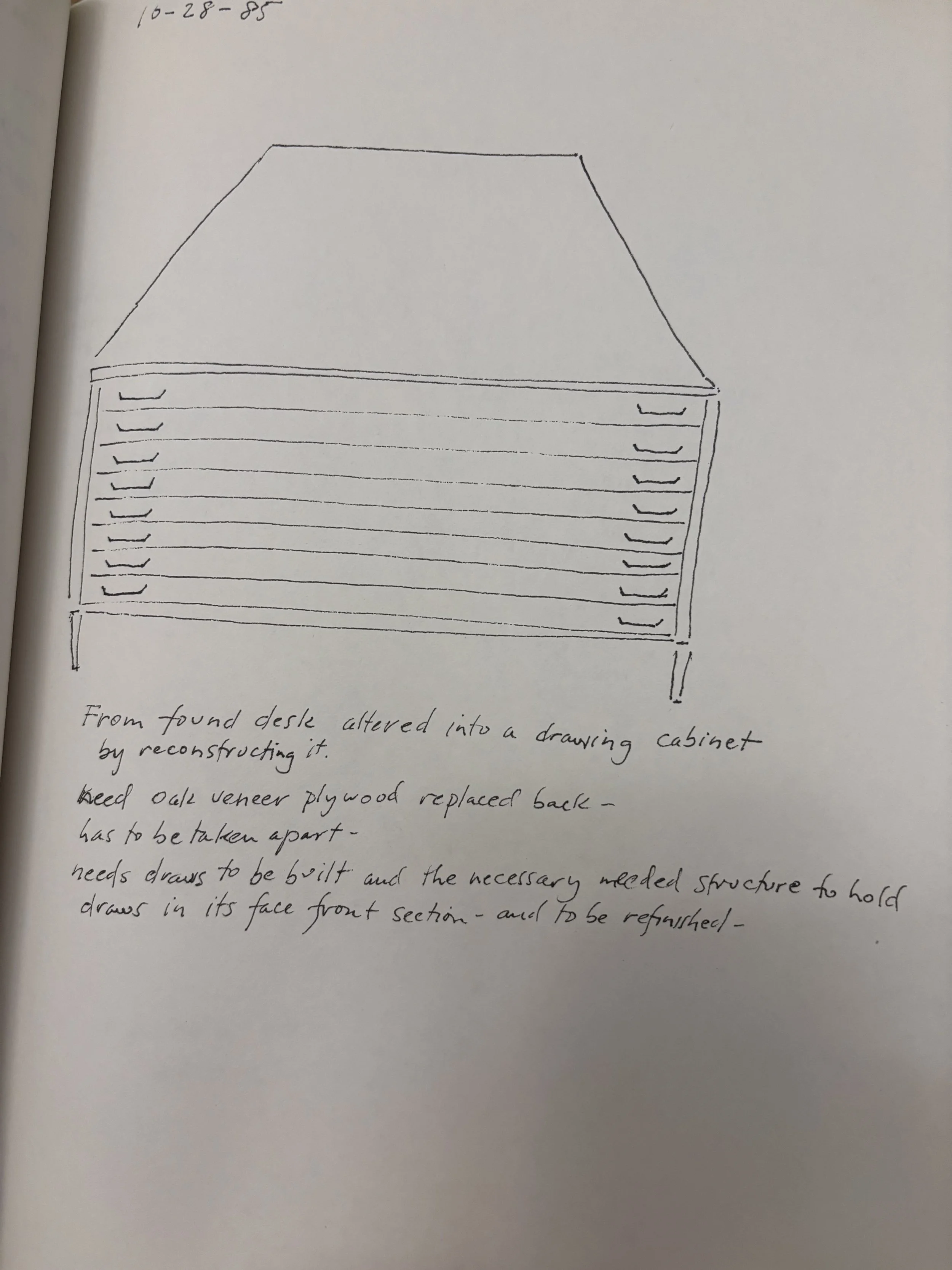 This rare journal serves as a window into the mind of Alan Peters OBE, one of the most influential figures in the British Studio Furniture movement. The journal is a rich compilation of hand-rendered sketches, meticulous technical drawings, and philosophical musings on the nature of wood.